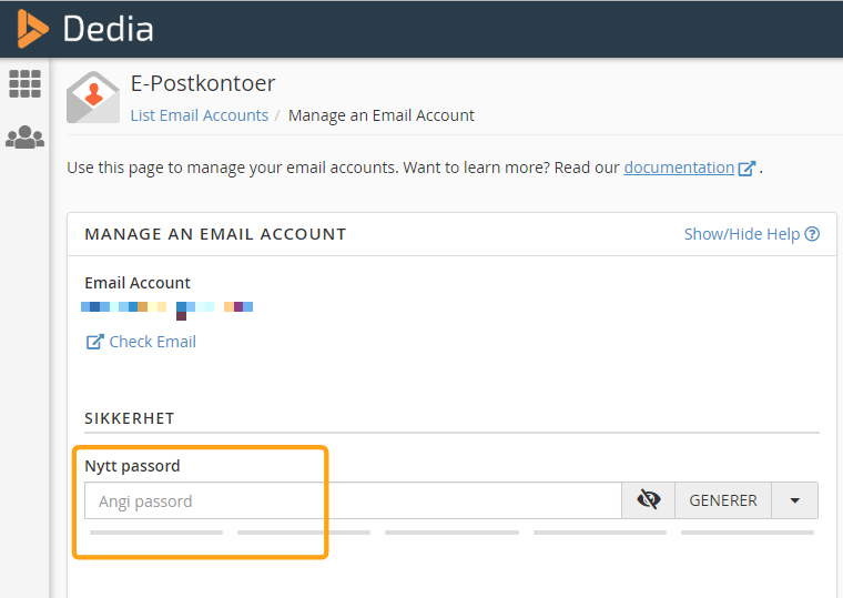 Husk at evt. e-postprogrammer og klienter som telefon, Outlook etc. vil måtte oppdateres med det nye passordet for å kunne fortsette med å sende/motta e-poster med denne kontoen.