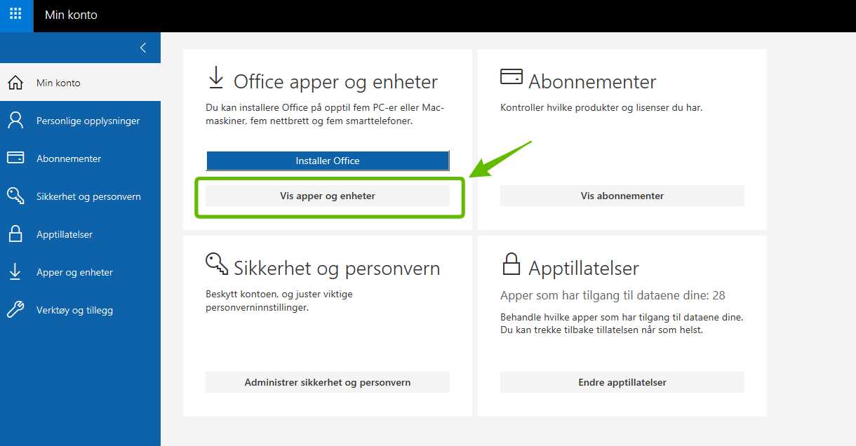 4) Klikk på knappen "Vis apper og enheter"