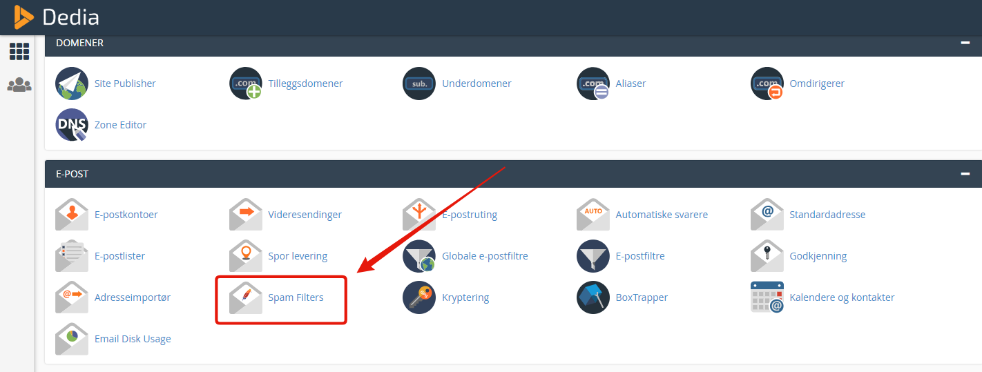 5) Scroll ned til kategorien E-POST og klikk på ikonet "Spam Filters"