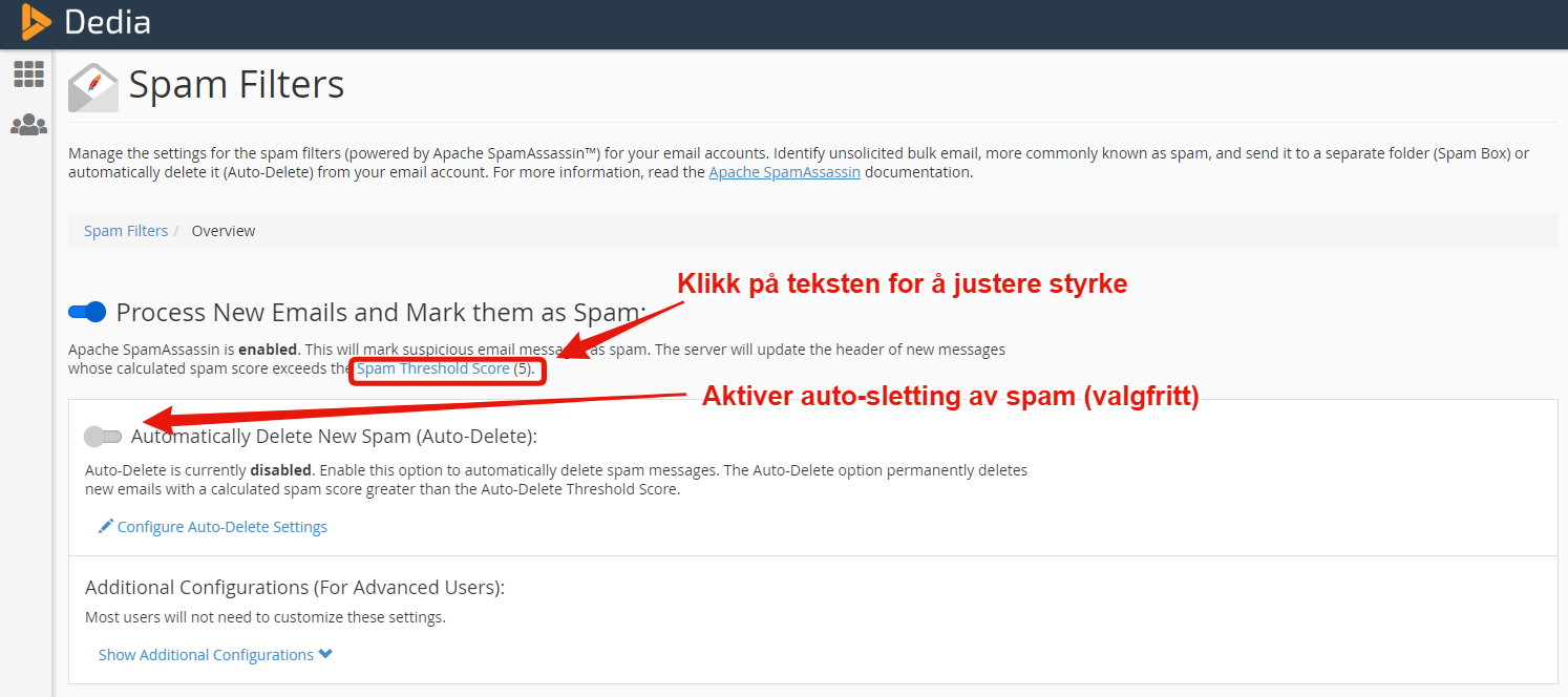 Mottar du mye søppelpost? Apache SpamAssasin™ spamfilter bidrar til å beskytte din innboks mot uønsket søppelpost, svindel og spam. I denne guiden viser vi deg hvordan du enkelt kan aktivere og endre innstillingene for ditt spamfilter.